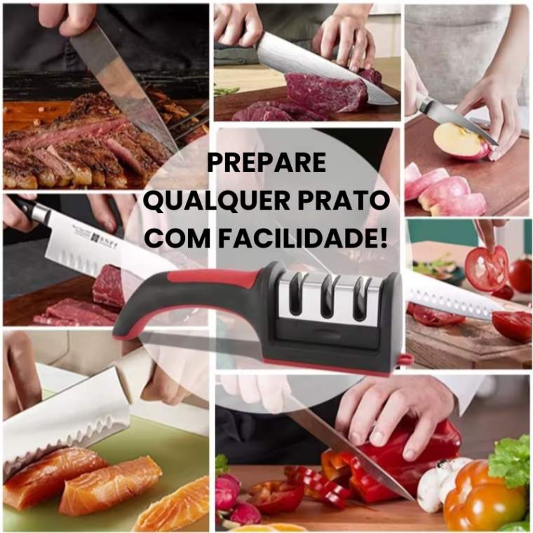 Com um sistema pensado para o uso diário, o afiador ajuda a restaurar o corte de diferentes facas da cozinha, deixando o preparo de carnes, legumes e outras receitas muito mais rápido, preciso e agradável.