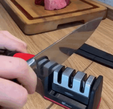Com um sistema em 3 etapas, este afiador alinha, afia e finaliza o fio da lâmina em poucos movimentos e sem esforço.
